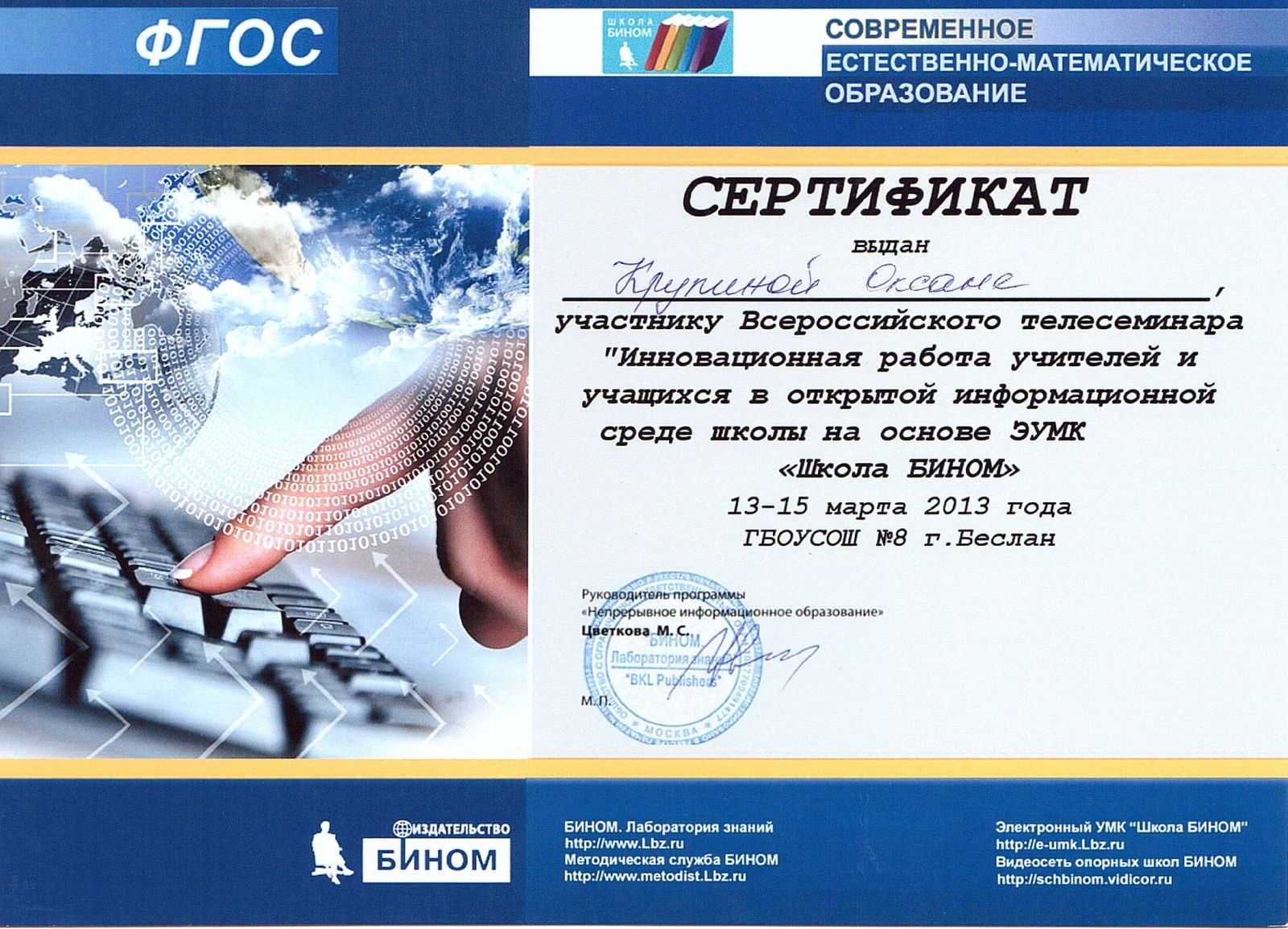 ВСЕРОССИЙСКИЙ ТЕЛЕСЕМИНАР "ИННОВАЦИОННАЯ РАБОТА УЧИТЕЛЕЙ И УЧАЩИХСЯ В ОТКРЫТОЙ ИНФОРМАЦИОННОЙ СРЕДЕ ШКОЛЫ НА ОСНОВЕ ЭУМК "ШКОЛА БИНОМ" Г. БЕСЛАН
