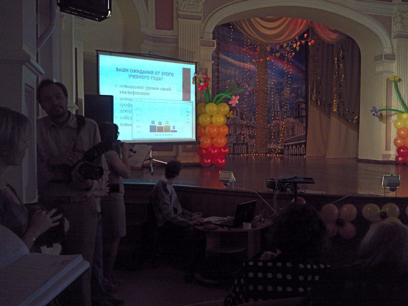 В рамках мероприятия "Торжественное собрание педагогической общественности г.Иркутска, посвященное Дню учителя", по инициативе "Центра информационно-методического и психологического обеспечения деятельности муниципальных образовательных учреждений г. Иркутска", был проведен опрос с сипользованием системы VOTUM на тему пожелания новому учебному году. (При поддержке компании Inter View).