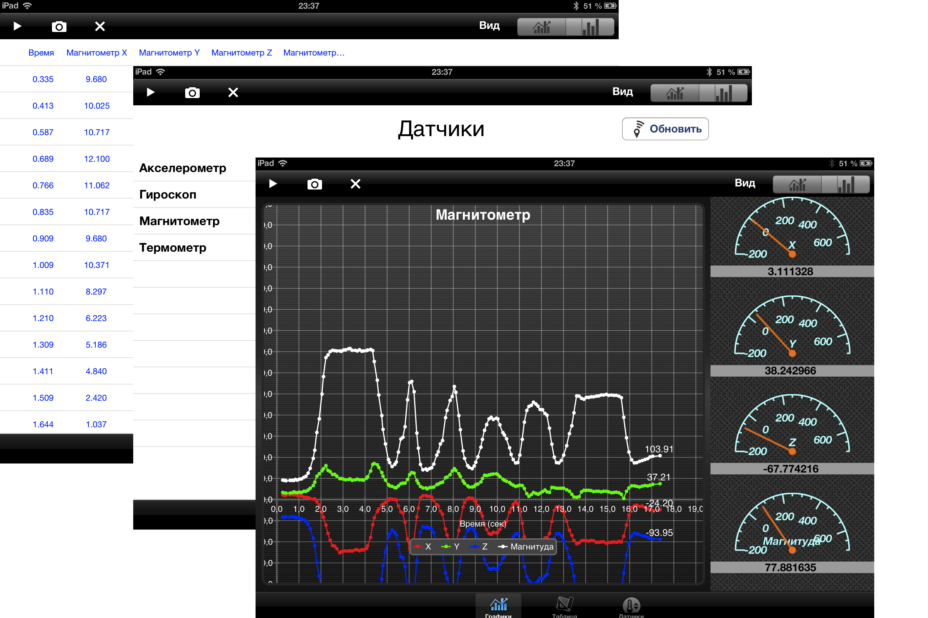 Данные экспериментов в дальнейшем могут быть сохранены в графическом и текстовом виде.