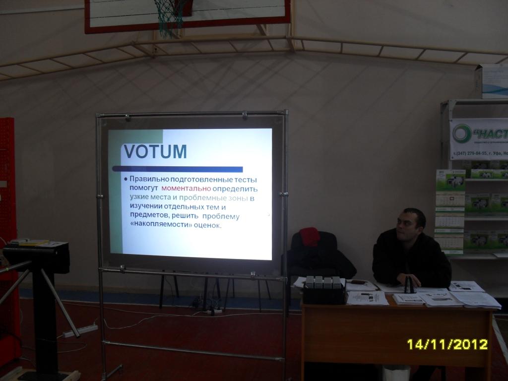 14 ноября 2012 года, Институт развития образования РБ совместно с Министерством образования РБ провел Республиканский «Фестиваль современных информационно-коммуникационных технологий в образовании». В рамках работы фестиваля работало 13 авторских секций, где был представлен передовой педагогический и инновационный опыт Республики Башкортостан Система VOTUM была представлена на двух секциях с проведением мастер – классов: