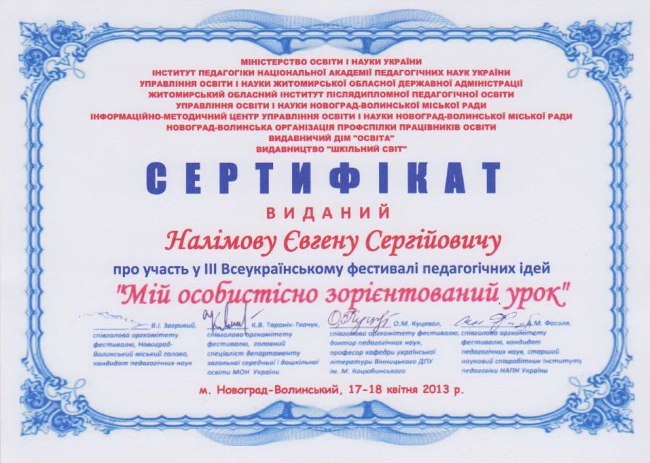 III Всеукраинский фестиваль педагогических идей "Мой личностно-ориентированный урок", г. Новоград-Волынск